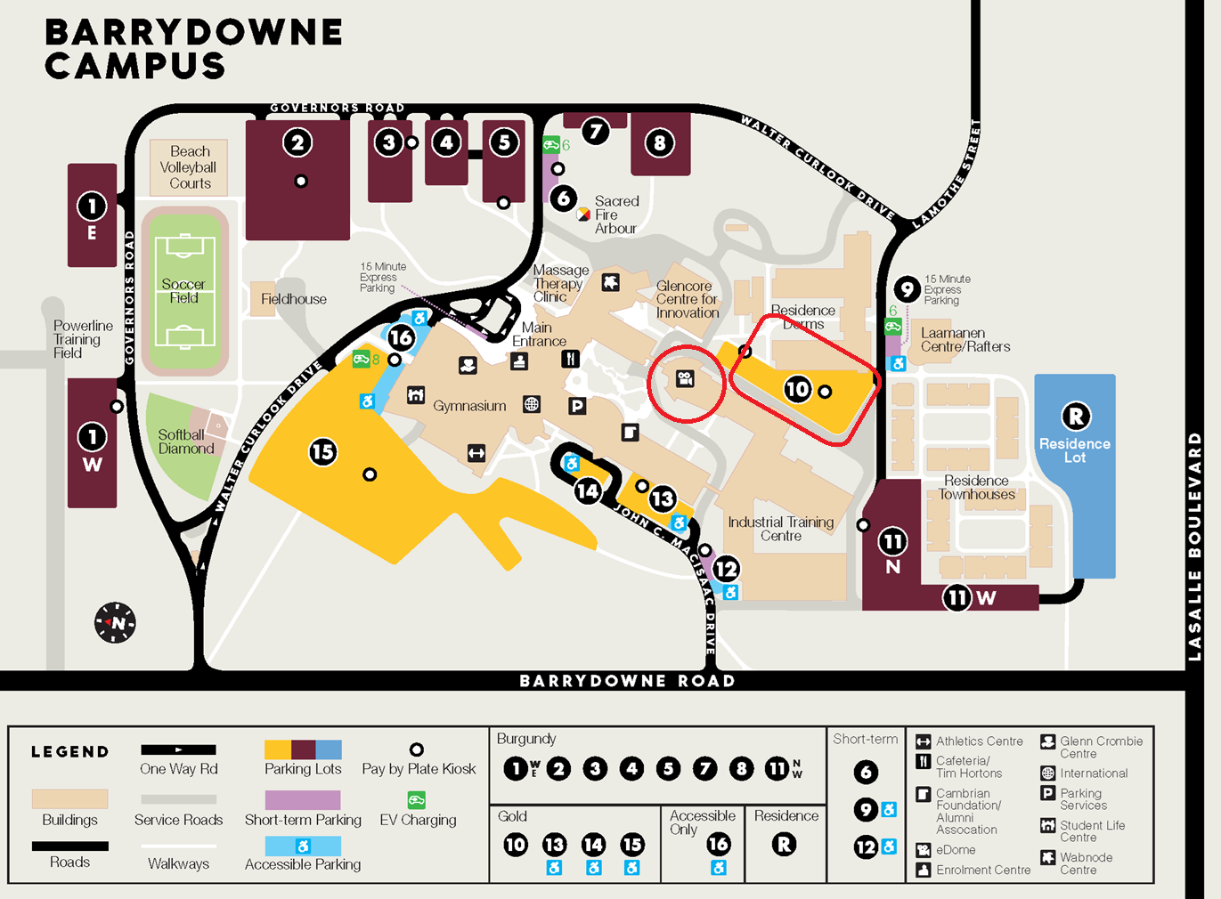 - Drive down the street (past parking lot 7 & 8) until you see Lasalle Secondary School, then turn right (towards the Cambrian residence)